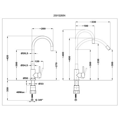 • Forgatható felső kifolyócső - 200 mm hossz