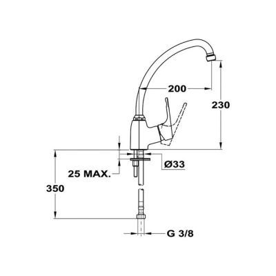 Mofém egykaros bojler mosogató csaptelep 200 mm-es forgatható felső kifolyócsővel, alsó bekötésű, nyílt rendszerű bojlerekhez.