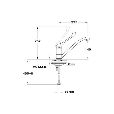 • 225 mm-es flexibilis kifolyócsővel, 3/8"-os csatlakozással
