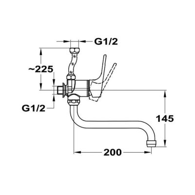 Mofém egykaros bojler mosdó csaptelep 200 mm-es forgatható alsó kifolyócsővel, felső bekötésű, nyílt rendszerű bojlerekhez.