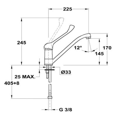 Mofém orvosi mosogató csaptelep 225 mm-es forgatható alsó kifolyócsővel és 40 mm-es kerámia vezérlőegységgel. Minden Teka keramikus vezérlőegység magas ellenállóképességű szinterezett kerámialemezeket tartalmaz. A tárcsák porózus felülete tovább megtartja a kenőanyagot és finomabb, lágyabb mozgást eredményez, meghosszabítva ezáltal a csaptelep élettartamát. A működtetést végző elem el van szigetelve a víztől, így biztosítva a folyamatos kenést.
