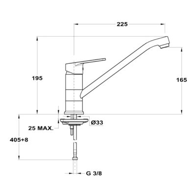 Mofém egykaros mosogató csaptelep 225 mm-es forgatható alsó kifolyócsővel és 35 mm-es kerámia vezérlőegységgel. Minden Teka keramikus vezérlőegység magas ellenállóképességű szinterezett kerámialemezeket tartalmaz. A tárcsák porózus felülete tovább megtartja a kenőanyagot és finomabb, lágyabb mozgást eredményez, meghosszabítva ezáltal a csaptelep élettartamát. A működtetést végző elem el van szigetelve a víztől, így biztosítva a folyamatos kenést.