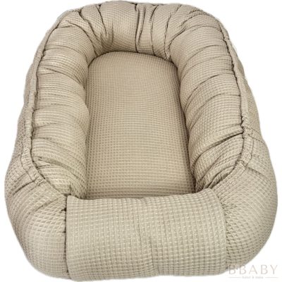 Mogyoró waffle babafészek – 100% pamut, légáteresztő újszülött fészek