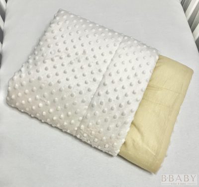 Monica – Puha babatakaró 70×90 cm | Bézs pamutvászon és krém minky, antiallergén töltettel