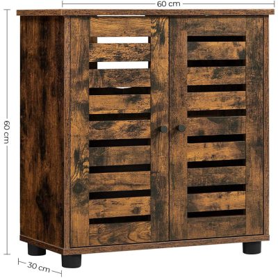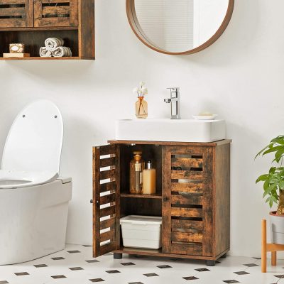 mosdó alatti fürdőszobai szekrény, padlós fürdőszobai szekrény, tárolószekrény, 60 x 30 x 60 cm, 2 zsaluajtóval, állítható polccal, rusztikus barna