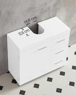 • Kérjük, vegye figyelembe a méreteket: Szifon nyílásának mérete: 20 x 15 cm; szekrény mérete: 30 x 70 x 64 cm (Mé x Szé x Ma). Mérje meg a szifonja és a mosdókagylója méretét, hogy biztosan illeszkedjen ez a fürdőszobai szekrény.