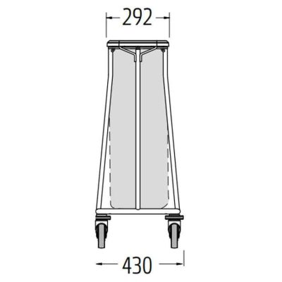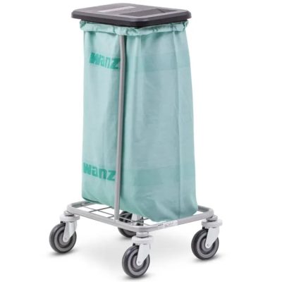 SW 1/80 szennyes ruha szállító kocsi színes zsákokkal. Stabil gumigyűrű a zsákok rögzítésére. Erős acélcső váz, műanyag fedő kézreálló markolattal. 4 bolygó kerék. 1 zsákos kivitel. Választható zsák színek: piros, kék, szürke, sárgabarack, menta.