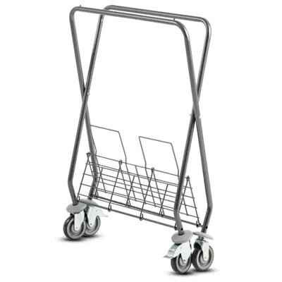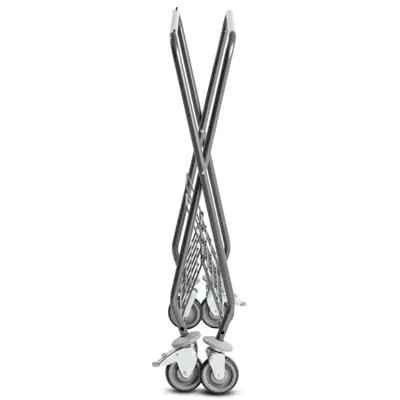 SW 290 szennyes ruha szállító kocsi színes zsákokkal. X lábú, összecsukható. Erős acélcső váz. 4 bolygó kerék.