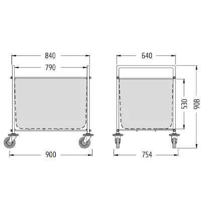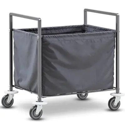 LT 240 szennyes ruha szállító kocsi, erős acél váz, 4 bolygó kerék, 140mm átmérőjű terelőkorongok, nagy teherbírás. Tépőzáras zsák rögzítési lehetőség. Szürke színű zsák.