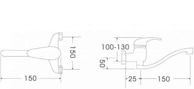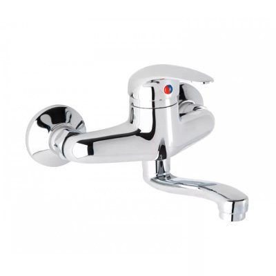Fali mosogató csaptelep, króm színű, sárgaréz ötvözet, egykaros, fali csaptelep.