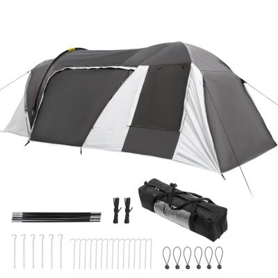A nagy, D-alakú cipzáras ajtók könnyű be- és kiszállást tesznek lehetővé a kempingsátorba és a kerékpártárolóba. Ezenkívül a kiváló minőségű 0,33 hüvelykes / 8,5 mm-es üvegszálas rudak, rögzítő karók és nagy teherbírású csatlakozók megvédik a sátrat attól, hogy a szél elfújja.