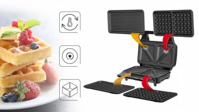 4 db háromszög alakú szendvics készíthető egyszerre és 2 db gofri.