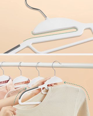 • [Helytakarékos] Ezek a kiváló minőségű műanyag vállfák mindössze 0,5 cm vastagok, és kabátokat és nadrágokat, valamint sálakat és nyakkendőket akaszthat a középső rúdra, így több ruhát is akaszthat ugyanabban a szekrényben.