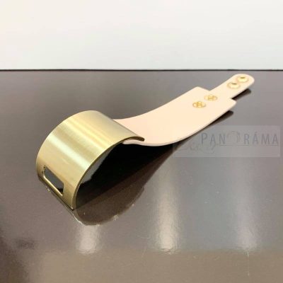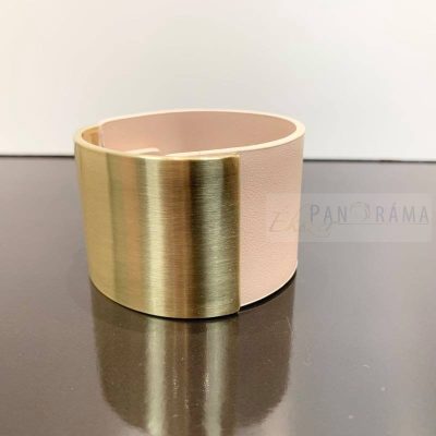Trendi műbőr széles karkőtő arany színű fém díszítéssel, dupla patent zárral.