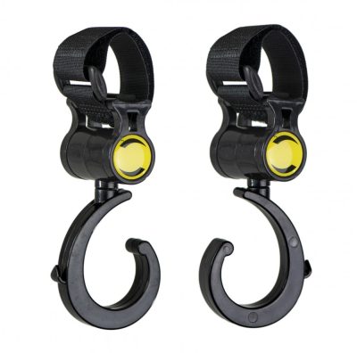 Többfunkciós, fekete színű, babakocsira szerelhető akasztó. Könnyű rögzítés tépőzár segítségével különböző méretű babakocsikra. Az akasztó 360 fokban forgatható. Használható otthon vagy autóban is.