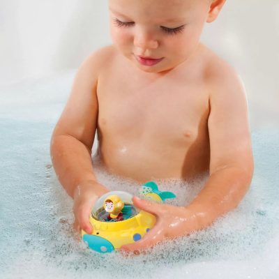 - a sárga játék a víz alá merülve buborékokat fúj ki magából