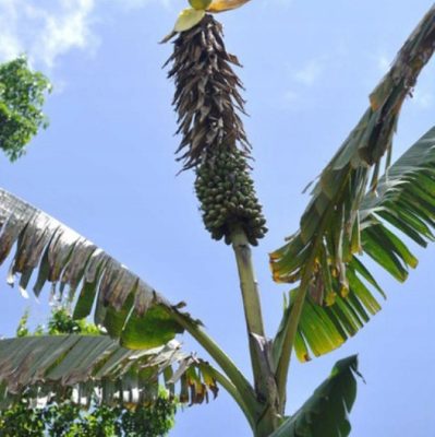 • Jellemző: különleges, vadon élő, magvas banánfaj Új-Guineából, függőlegesen álló virágzattal és terméssel.