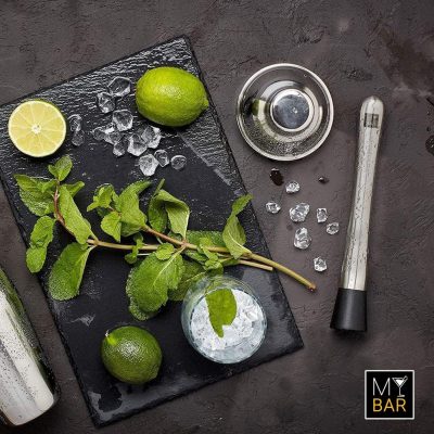 • Mojito alap: 1–2 tk cukor + lime cikkek + menta – muddler 3–4 finom nyomás, jég, rum, szóda.