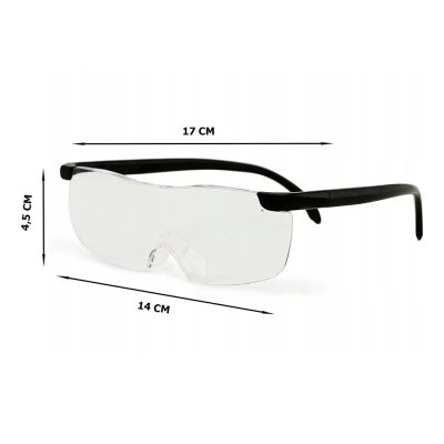 Ez a praktikus nagyító szemüveg 160%-os nagyítást biztosít, amely tökéletes választás azoknak, akik apró részleteket szeretnének látni tisztán és élesen, anélkül, hogy kézben tartott nagyítót használnának. Különlegessége, hogy dioptriás szemüveg fölött is viselhető, így azok számára is ideális megoldás, akik szemüvegre szorulnak.
