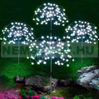 Napelemes földbe szúrható tüzijáték világítás 90/120/150 LED meleg fehér vízálló dekoráció szolár csillagszóró fény