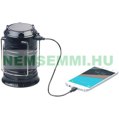 Napelemes kempinglámpa és powerbank 1200mA akkumulátoros telefontöltő és zseblámpa beépített akkumulátorral + napelem és USB 5V