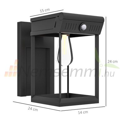 Napelemes kerti fali lámpa, mozgásérzékelővel 14x24x24 cm fekete kültéri világítás