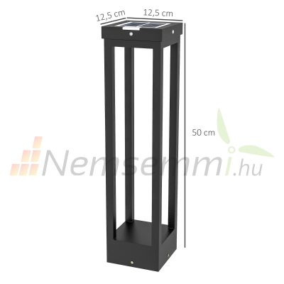 Napelemes kerti lámpa, kültéri állólámpa 10 óra üzemidő, vízálló 12,5x12,5x50 cm, fekete