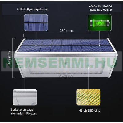 Napelemes lámpa 900 lumen mozgásérzékelős szolár lámpa 25 m2 megvilágítási terület