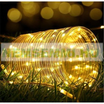 • Napelemes lámpa fényfűzér ledszalag 10 méter 100 db meleg fehér akkumulátoros vízálló fénykötél