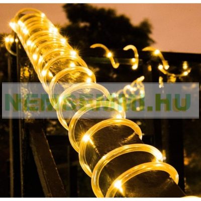 Napelemes lámpa fényfűzér ledszalag 10 méter 100 db meleg fehér akkumulátoros vízálló fénykötél