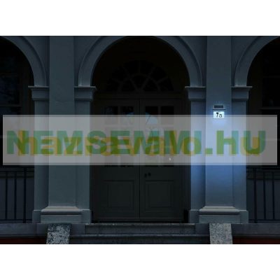 Kültéri napelemes fali lámpa, amelynek nagyméretű világító felületére könnyen ráragaszthatja a házszámot.