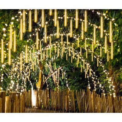 Napelemes meteor fényfüzér 30 cm LED meleg fehér kültéri világítás vízálló karácsonyi dekoráció napelemes meteorzápor fény