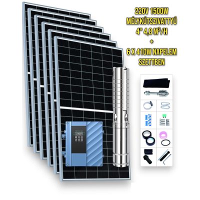 Napelemes öntöző szivattyú készlet 200V AC/DC 1500W mélykútszivattyú 4,8 m³/h 203 méter emelési magasság- 6 x 430W napelem - szolár szabályzó - öntözés mélykút szivattyúval és napenergiával!