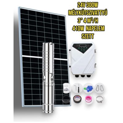 Napelemes öntöző szivattyú készlet 24V 300W mélykútszivattyú 4 m³/h 35 méter emelési magasság 430W mono napelem - szolár szabályzó - öntözés mélykút szivattyúval és napenergiával!