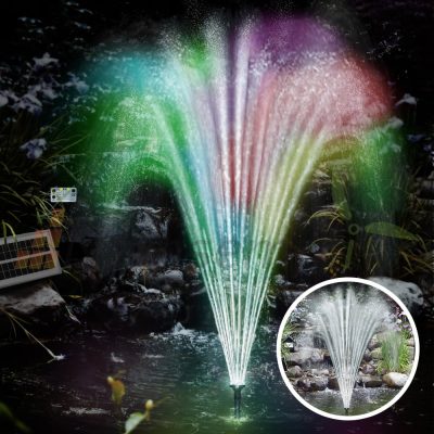 Varázsolja kerti tavát elegáns szökőkúttá! A nagy teljesítményű napelemmel ellátott szökőkút teljesen független a konnektortól, a nagy teljesítményű újratölthető akkumulátornak köszönhetően a működés rossz időben vagy sötétben is lehetséges. A beépített érzékelő alkonyatkor automatikusan bekapcsolja a vízsugár LED-világítását, ami lenyűgöző fényhatásokat eredményez. A LED színváltó segítségével a szökőkút fehér vagy különböző színű megvilágítással hangulatos hatást kelthet. A szökőkút közvetlenül a vezérlődobozon vagy teljesen távirányítással vezérelhető a teraszról vagy erkélyről. A távirányítóba ráadásul egy kis, praktikus zseblámpát is beépítettek.