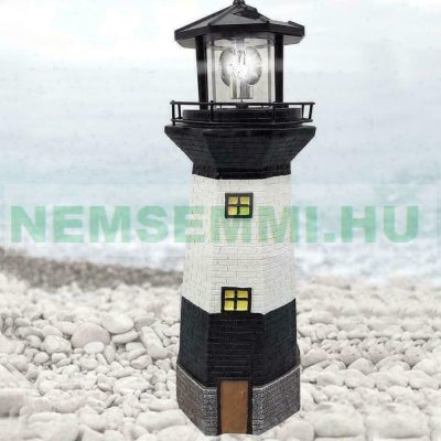 Napelemes világítótorony lámpa forgó világítással kerti dekoráció fekete