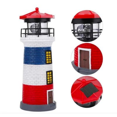 Napelemes világítótorony lámpa forgó világítással kerti dekoráció kék-fehér-piros csíkós