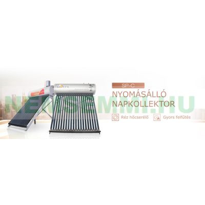 Tartályos napkollektor beépített réz hőcserélővel, így a rendszer nyomás alá helyezhető. A belső tartály rozsdamentes, a külső festett acél, a kettő között vastag szigetelés.