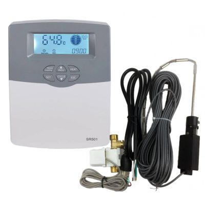 • Napkollektor fűtés vezérlés SR501 20 méter kábel a hőmérőhöz + vízszint érzékelő + mágnes szelep tartályos napkollektorhoz NTC10K szenzorral