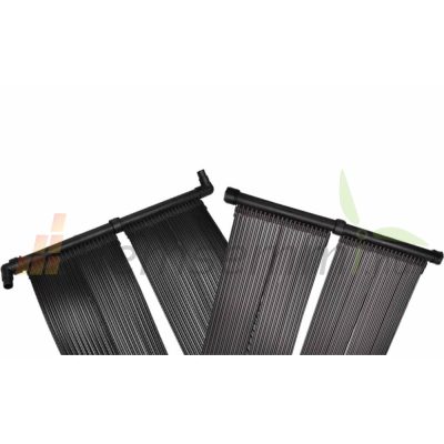 Ez egy speciális gumiszőnyeg, amelybe hosszirányban speciális csatornák vannak. A fekete gumi hatékonyan begyűjti és továbbítja a hőt a benne folyó víznek. Egy fűtőpanel mérete 5 m2, nagyobb medencék esetén több panel is sorba köthető. A medence vízforgatójához is lehet kapcsolni, így külön szivattyú nem szükséges.
