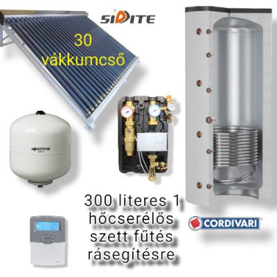 Ez a csomagunk 1 db 30 csöves vákuumcsöves napkollektorral, minőségi vezérléssel, nagyteljesítményű szivattyú állomással és Cordivari 300 literes, 1 hőcserélős puffer tárolóval szállítjuk.