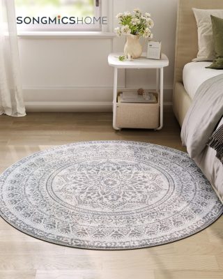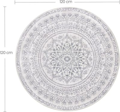 • Nappali szőnyeg, 120 cm, kerek szőnyeg, csúszásmentes, mosógépben mosható, szürke