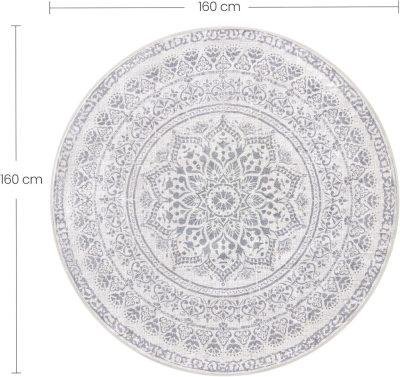 SONGMICS HOME nappali szőnyeg, 160 cm átmérő, kerek szőnyeg nappaliba, csúszásgátló, hálószobába, fotel mellé, gépben mosható, boho stílus, galambszürke