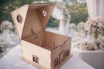 Az egyedi nászajándék gyűjtő házikó tökéletes megoldás arra, hogy az esküvői vendégek elegánsan és biztonságosan elhelyezhessék a pénzajándékot, borítékokat vagy jókívánságokat. Stílusos és mutatós kiegészítője az esküvői dekorációnak, ami praktikus funkcióval is bír. A házikó formájú pénzgyűjtő különleges és ötletes választás, ha valami egyedit szeretnétek az ajándékok összegyűjtésére. Később akár lakásdekorációként is megállja a helyét, örök emlék marad a nagy napról. A nászajándék gyűjtő házikó nem gravírozott, de egyedisége, formája és stílusa miatt mégis személyes és kedves részlete lehet esküvőtöknek.