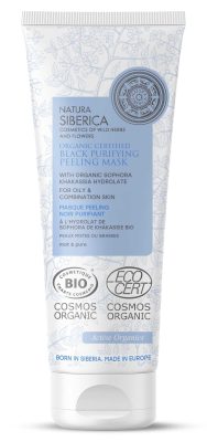 Natura Siberica fekete tisztító hámlasztó bio maszk zsíros és vegyes bőrre, 75 ml