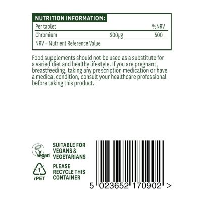 A Natures Aid Króm Pikolinát 200 mikrogramm krómot tartalmaz tablettánként. Vegán étrendbe is beilleszthető, valamint glutén-, élesztő-, tej-, szója- és diómentes.