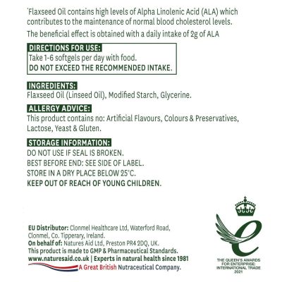 Natures Aid Lenmagolaj hidegen sajtolt lenmagolajat tartalmaz, vegetáriánus lágy gélkapszulában, és napi adagja 500 mg ALA-t és 170 mg LA-t biztosít. A hidegsajtolás biztosítja, hogy az olaj egyik értékes komponense sem sérül meg a feldolgozás során.