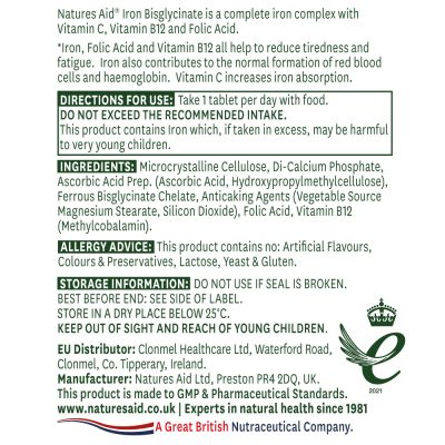 A Natures Aid Vas-biszglicinát tabletta nagyszerű választás, hogy a napi ajánlott vasmennyiséget biztosítani tudja, C-vitaminnal, folsavval és B12-vitaminnal kombinálva. A tabletta a vasat biszglicinát formában tartalmazza. A jól felszívódó tablettát vegánok és vegetáriánusok is fogyaszthatják.