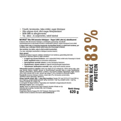 A vegan caffé latte ízesítésű Naturize® Ultra Silk is kizárólag természetes összetevőket tartalmaz, prémium barnarizs-fehérjeport, holland instant bio kávét, természetes latte aromát, egy kevés Stevia levél kivonatot és pár szem Himalája sót. Gluténmentes, tejet, laktózt, szóját, aszpartamot, állati eredetű összetevőt nem tartalmaz.