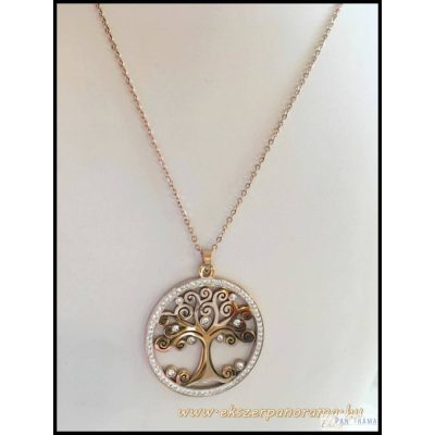 Nemes acél arany színű nyaklánc Kristályos életfa medállal